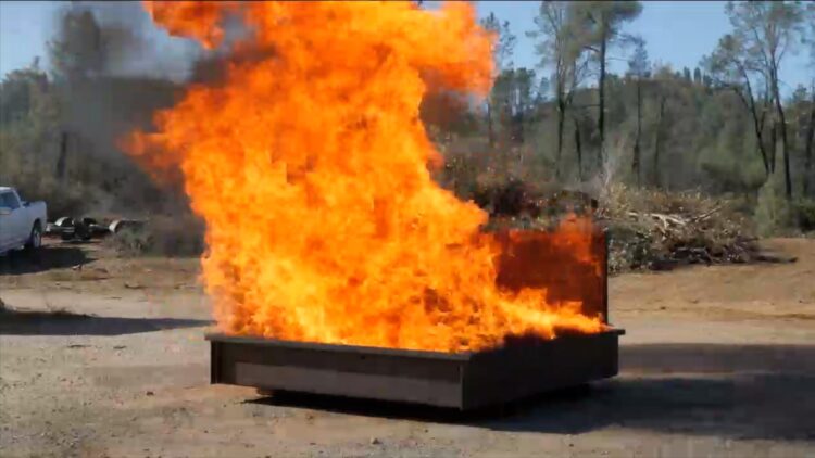 This is a GreenFire® sponsored standard Heptane fire test. Performed at a municipal fire department training yard in northern California. Fire Department personnel was present, with up to eight fire pumper engines and staff. After ignition, the fire is allowed to burn for 1 minute, reaching 2000 degrees. The firefighter had 3 minutes to put out the fire. GreenFire® Foam puts out the fire in less than 10 seconds.